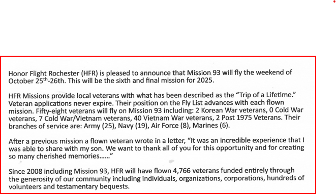 - DEPARTURE: Saturday, October 25, 2025 at 6:05am, ROC Airport