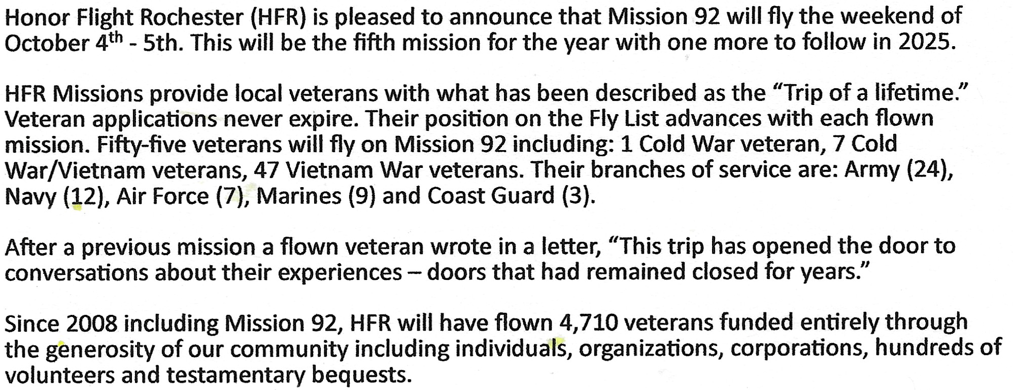 Welcome Home Mission 92 Veterans